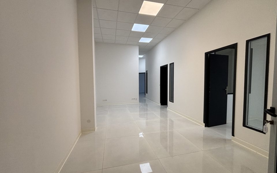 Grande entrée, 4 bureaux. Local livré clé en main hors installation climatisation qui est à la charge du locataire. Parking devant l’immeuble.